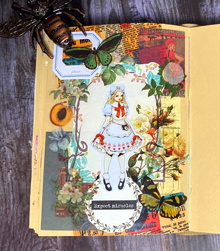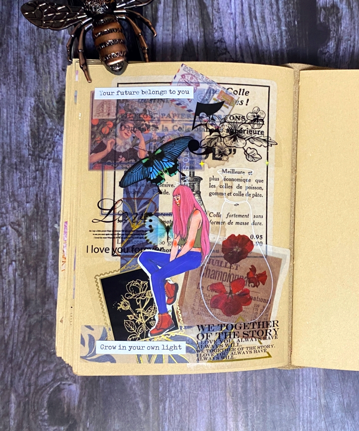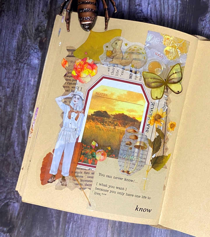 오른쪽은 흰 병 속의 붉은 꽃 스티커를 쓰고 싶어서 시작했다. 오른쪽 상단의 둥근 꽃 프레임과 여인 스티커, 강아지 두 마리가 나름 포인트.