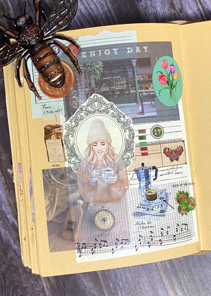 왼쪽은 커피/카페/일상 테마로 공들여 꾸며본 감성 빈티지 다꾸. 저 튀는 타원형 꽃 스티커가 좀 거슬리긴 하지만 그래도 전반적으로 만족스럽다.